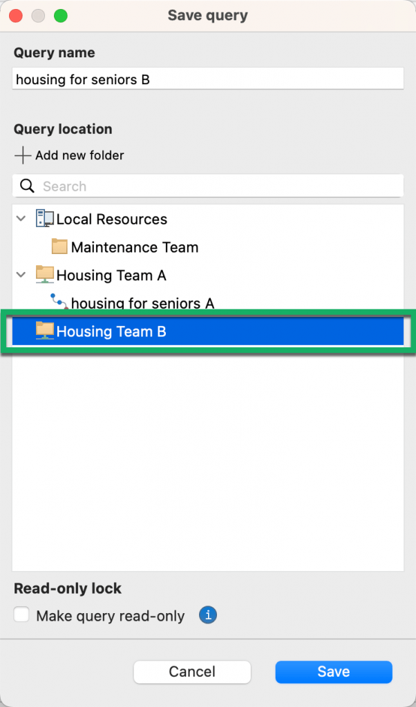 You and your team members can access the shared aggregation query from the My resources sidebar.