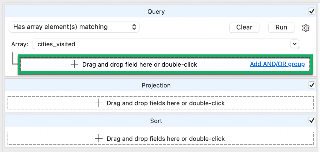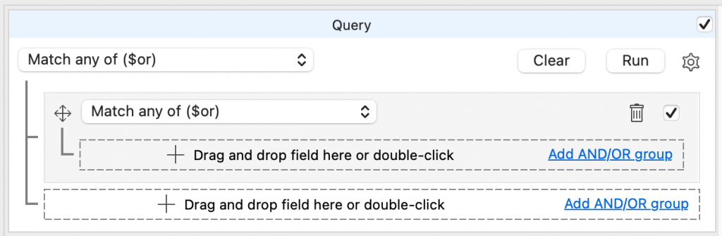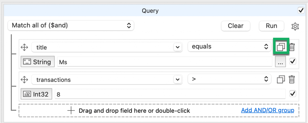 Visual Query Builder lets you build MongoDB queries by dragging and dropping fields from the documents in a collection, perfect if you’re new to MongoDB and learning the MongoDB query syntax.